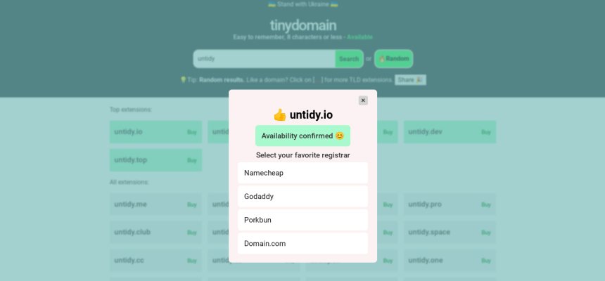 Tinydomain was build in Python/Flask and focused on high quality short, targeted domain names. It was launched and tested during 2022 with a total of 25,860 users performing 95,012 searches. The program was an exercise in Python which has now ended.